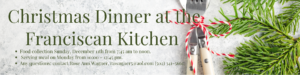 The Human Needs and Concerns Ministry is serving our annual Christmas Dinner at the Franciscan Kitchen on Preston Street on Monday, December 12th. All meals are carryout. Masks are no longer required. We will be collecting the food on Sunday, December 11th from 7:45am to noon. We need helpers that morning to collect the donations, load them in vehicles, and drivers to take everything to the Kitchen. We also need servers for the meal on Monday from 10:00 – 12:45. Any questions: contact Rose Ann Wagner, rawagner5@aol.com, (502) 341-5661.
