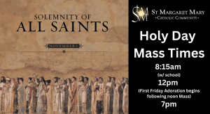 Solemnity of All Saints (Holy Day of Obligation) – November 1st @ 8:15am; 12pm; 7pm