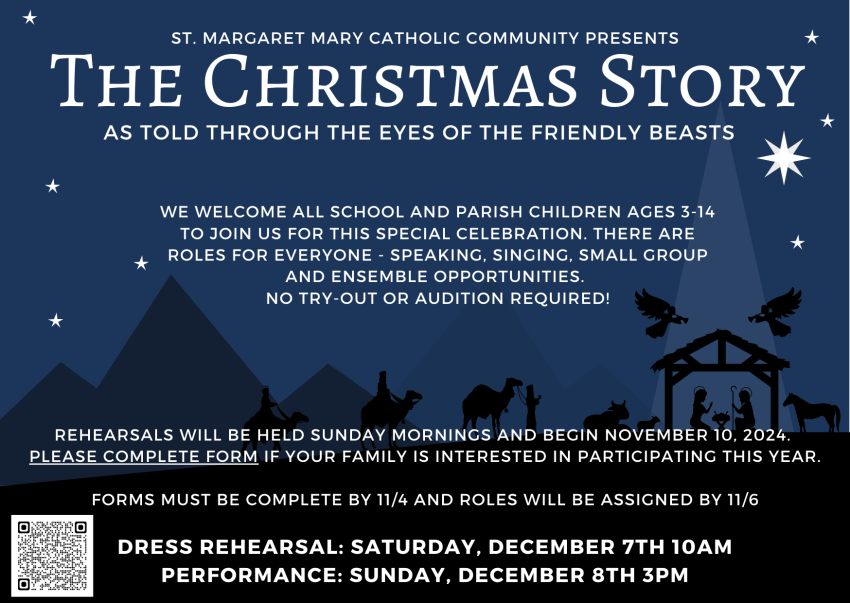 St. Margaret Mary invites all school and parish children to join us for the 2024 Children’s Christmas Program! This year’s production will be